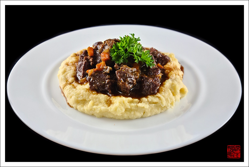 — Утомлённые щёчки с пюре из белых кореньев.