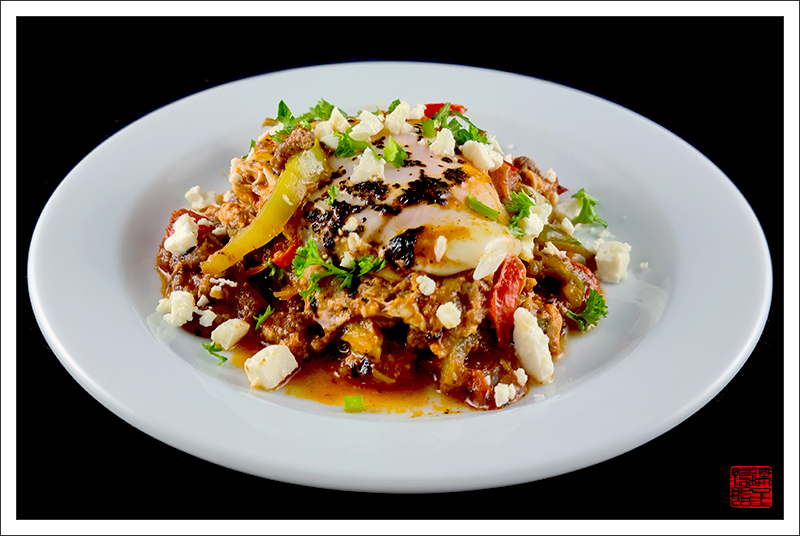 — Турецкий кыймалы юмурта. Яйца, пошированные в ядрёном мясном фарше, поджаренном с различными перцами чили, помидорами, овечьим сыром и специальными приправами.