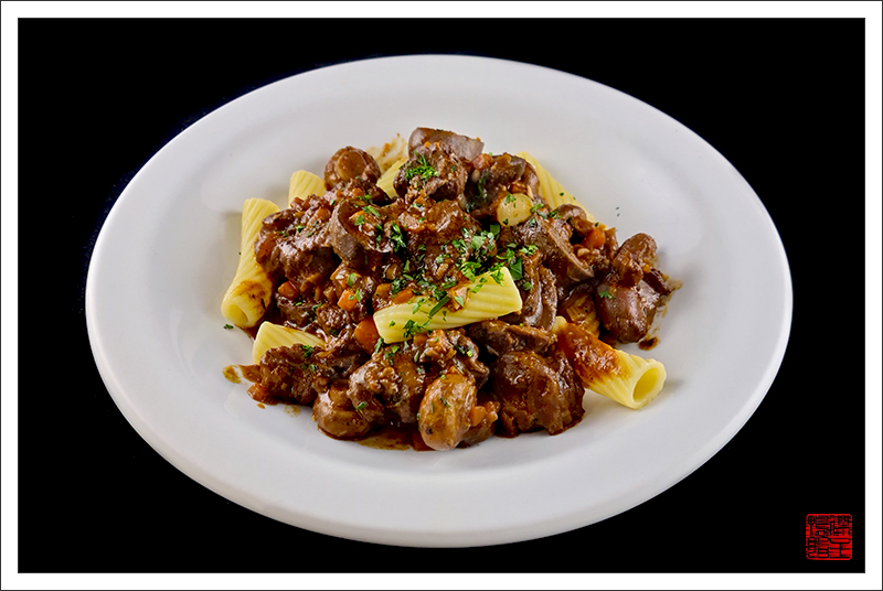— Гусь-о-ван в винном соусе по-крестьянски с тортильони.