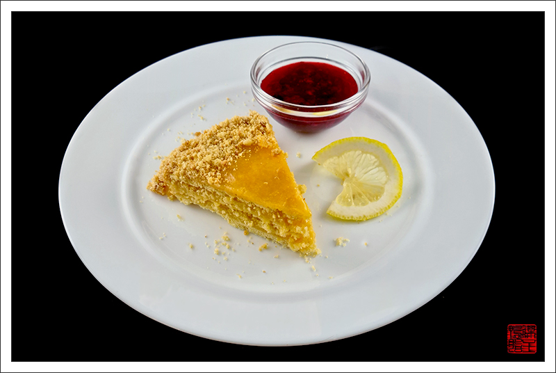 — Анковский пирог с лимонным кремом и ягодным киселём.